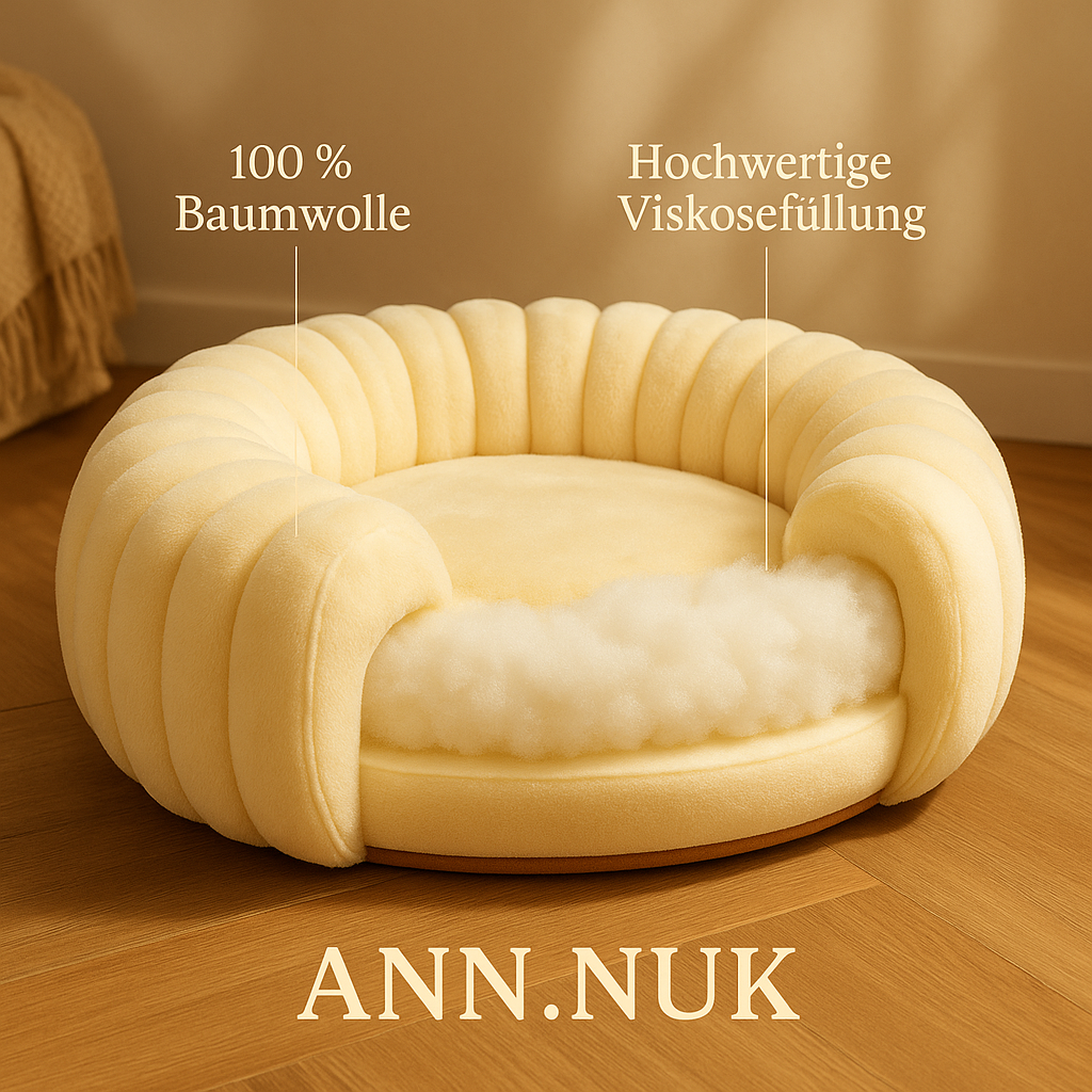 Das runde Design des Hundebetts unterstützt die natürliche Körperform deines Hundes und fördert gesunden Schlaf. Es ist wie eine liebevolle Umarmung, die das Wohlbefinden steigert.